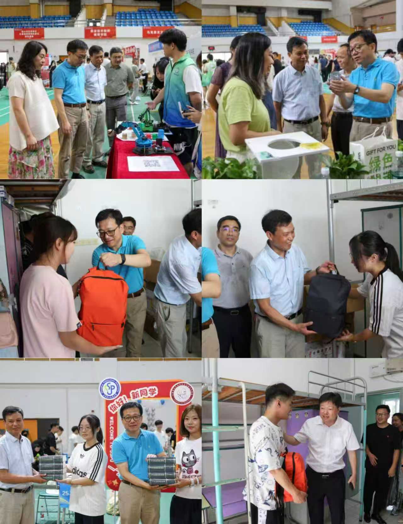 校领导陆敏、谢华清、吴沛东、丁彬走访了新生报到现场、生活园区、新生寝室,亲切慰问初入校园的新生,为学生送上“爱心助学大礼包”,传递学校的温暖与关怀。同时,校领导及相关职能部处负责人也走访慰问了参与迎新工作的老师和志愿者。
